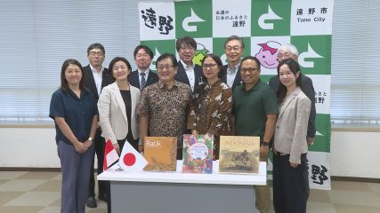 駐日インドネシア大使館の職員が先週金曜日に多田市長を表敬訪問しました。市役所とぴあ庁舎を訪れたのは駐日インドネシア大使館の職員3人とコーディネーター2人です。遠野市はおととし9月にインドネシア共和国プルバリンガ市と「友好連携の構築に関する意向表明」を締結し、人材開発・産業・教育など様々な分野における友好連携の構築を図っています。大使館のギナ・アングライニさんは、「私たちは遠野市とプルバリンガ市のように地方と地方が交流し関係性が深まっていくことを重要視しています」と、あいさつしました。続いて行われた寄附採納式では、駐日インドネシア大使館からこども本の森遠野や市立図書館に向けてインドネシア語で書かれた本30冊が寄贈されました。受け取った多田市長は「いただいた本は多くのこどもたちがインドネシアを知るきっかけになると思います」と、感謝していました。また懇談の中でギナさんたちは「先日はプルバリンガ市で遠野をテーマにした中学生作文コンクールが行われた」「ぜひ遠野の皆さんにもプルバリンガ市に来てほしい」などと話していました。このほか大使館の職員たちは滞在中に技能実習生が働いているワイ・デー・ケーや筑波ダイカスト工業を訪問し、先週末に開催された遠野まつりにも参加しました。なお遠野市は外国人技能実習生制度の活用をはじめ、プルバリンガ市との友好連携や交流をより一層進めていくとしています。Copyright(C) TonoCableTelevision. All rights reserved.