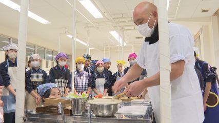 遠野の暮らしから生まれた郷土料理について学ぶ食育講座が今週月曜日に遠野西中学校で開かれました。この食育講座は遠野で古くから受け継がれてきた料理を中学生に学んでもらうことで郷土愛を育もうと遠野市が開きました。今回は遠野西中学校の全校生徒を対象に遠野の郷土料理「ひっつみ」と「きりせんしょ」の作り方講座が行われました。講師を担当したのはこれまで宮守村の給食センターや達曽部・鱒沢保育所で調理員を務め現在は遠野西中学校の主任用務員を務める照井崇史さんです。ひっつみは薄く伸ばした小麦粉の生地を手でちぎって煮込む具だくさんの汁物、きりせんしょはモチモチとした食感と香ばしさが特徴の餅菓子で、どちらも遠野で親しまれてきました。生徒たちは野菜の切り方や具材を鍋に入れる順序、材料を計量するときの注意点など、上手に作るためのポイントを照井さんから教わり、班員同士で協力しながら作業を進めていました。調理開始からおよそ1時間30分で料理が完成。生徒たちは班ごとに机を囲み自分たちで作った郷土料理をおいしく味わっていました。なお、この食育講座は今後も市内中学校で実施される予定です。Copyright(C) TonoCableTelevision. All rights reserved.
