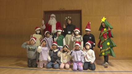 子どもたちに楽しみながら英語に親しんでもらう「英語で遊ぼう!Englishキャラバン」が宮守児童館と遠野児童館で行われました。Englishキャラバンは、グローバル人材の育成を目的に英語に対する興味や関心を高めてもらおうと遠野市からの委託を受け遠野市教育文化振興財団が実施しています。この日宮守児童館で講師を務めたのは、キャラバン隊メンバーのディーンさんと谷渕眞理子さんです。今回は12月の開催ということで宮守児童館を利用している小学1年生から3年生の17人が、サンタクロースの帽子をかぶって参加し、はじめにクリスマスにちなんだ人物や品物を3つのヒントを手掛かりに当てる「スリーヒントクイズ」を行いました。児童たちは講師が話す英語のヒントに耳を傾けながら英単語の意味を学び、楽しそうにクイズに挑戦していました。続いてクリスマスに関する本の読み聞かせが行われ、子どもたちは本を通してクリスマスの風習や、「トナカイ」「ソリ」といった英単語を物語を楽しみながら自然に学んでいました。続いてきのう遠野児童館で行われたEnglishキャラバンの様子をお伝えします。この日はキャラバン隊メンバーのビリーさんと谷渕眞理子さんが講師を務め、遠野児童館を利用している小学1・2年生およそ15人が参加しました。この日も「スリーヒントクイズ」とクリスマスに関する本の読み聞かせが行われ、子どもたちは楽しみながら英語に親しみました。このうちクリスマスに関する本の読み聞かせでは、児童たちは本を通してクリスマスの風習や英単語などについて理解を深めていました。なお遠野市教育文化振興財団では今後も児童館や児童クラブなどを巡回しながらEnglishキャラバンを開催していくということです。Copyright(C) TonoCableTelevision. All rights reserved.