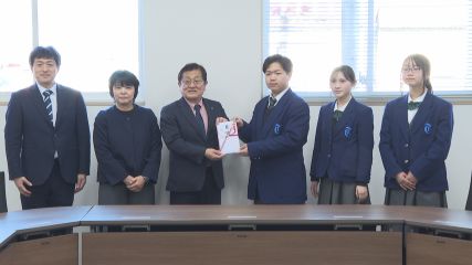 緑峰高校の生徒が先月22日、チャレンジショップ緑屋の売上金を市に寄付しました。この日とぴあ庁舎を訪れたのは、緑峰高校情報処理科でチャレンジショップ緑屋の店長を務めた高橋鳳舞さん、商業クラブ副会長の菊池愛美さん、細川広菜さんです。緑峰高校では市場調査から商品の仕入れや販売までの商取引を学ぶ授業の一環として、模擬店舗の「チャレンジショップ緑屋」を毎年開催しています。今回は昨年10月に開催したチャレンジショップ緑屋の売上金から、高校魅力化事業への支援金として5万円を寄付しました。目録を受け取った多田市長は、「緑峰高校の取り組みも生徒の皆さんの活動も本当に素晴らしいと思います大事に使わせていただきます」と感謝を伝えました。なお、緑峰高校では大船渡市山林火災で被災された人たちを支援するため、遠野市への寄付とは別に3万円を大船渡市へ寄付する予定ということです。Copyright(C) TonoCableTelevision. All rights reserved.