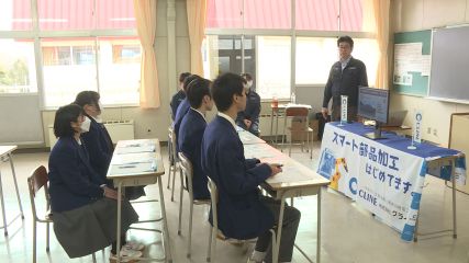市内の企業が求めている人材や仕事の内容などについて高校生に説明する「とおののしごと発見事業所説明会」が、先週木曜日に緑峰高校で開かれました。この説明会は緑峰高校の1・2年生57人を対象に、卒業後の進路に関係なく仕事に対する意識向上と市内の事業所への理解を深めてもらおうと開催されました。この日は製造・福祉・林業・小売・農業の分野から14事業所の社員が緑峰高校を訪れ、働いている様子の映像や仕事で使う機器の実物を用意するなど工夫して説明していました。生徒たちは1人あたり4社から話を聞き、メモをとったり気になったことを質問したりしながら熱心に聞いていました。生徒たちは身近な事業所の社員から詳しい仕事内容や働くうえで大切にしていることなど生の声を聞き、進路選択の参考にした様子でした。Copyright(C) TonoCableTelevision. All rights reserved.