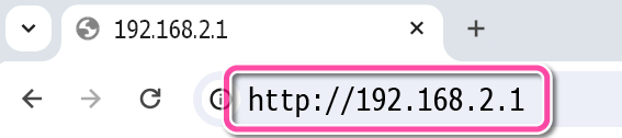 ブラウザのアドレス欄にhttp://192.168.2.1等、Wi-Fiルーターの管理画面(設定画面)を開くアドレスを入力し、エンターキーを押してください。