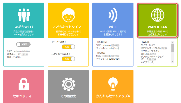 管理画面が表示されたら、WAN & LANをクリックしてください。