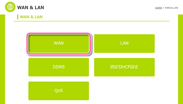 WAN & LAN画面が表示されたらWANをクリックしてください。