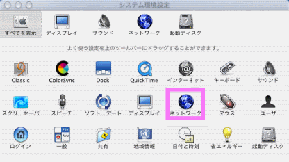 システム環境設定ウィンドウが開いたら、 [ネットワーク]をを開いてください。