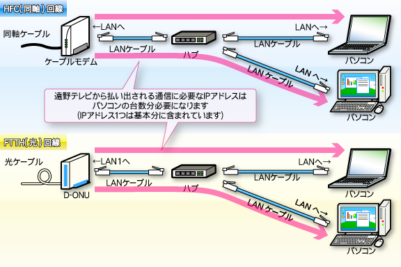 ハブを使用して複数のパソコンをインターネットに接続する場合、通信に必要なIPアドレスを追加する必要があります。
