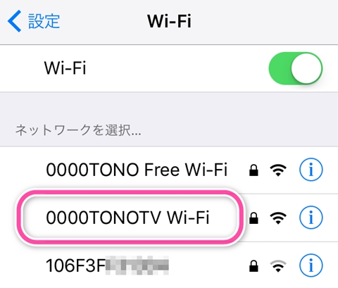 Wi-Fi画面の中から0000TONOTV Wi-Fiをタップしてください。