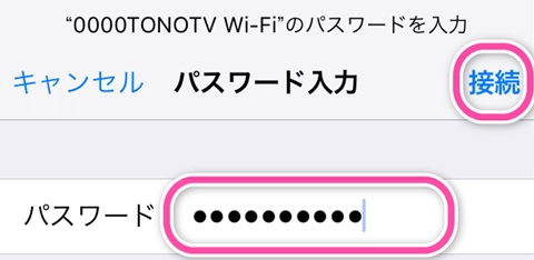 パスワード入力画面で、パスワード欄に別途お知らせした暗号化キーを入力し、接続をタップしてください。