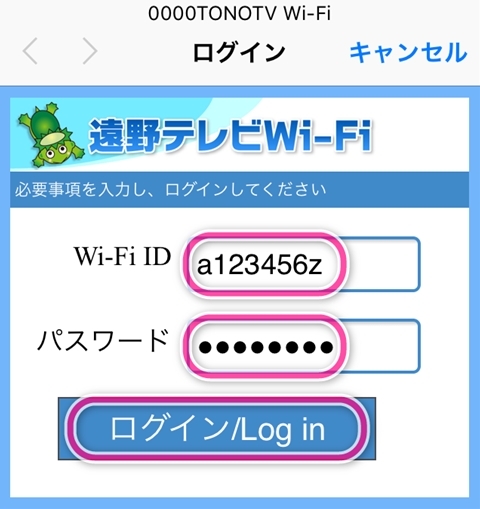 ログイン画面が表示されるので、Wi-Fi IDとパスワードを入力し、ログインをタップしてください