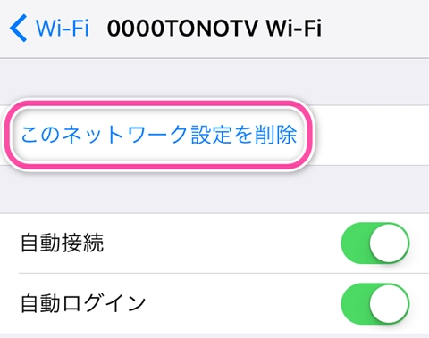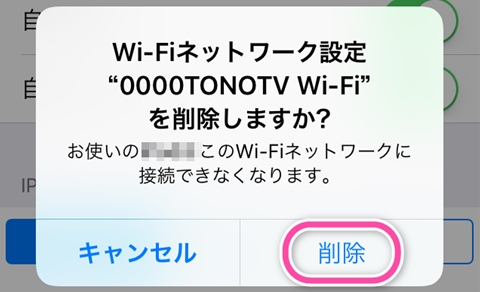 Wi-Fiネットワーク設定〜を削除しますか?の画面が表示されるので、削除をタップししてください。