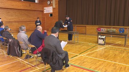 上郷町の自主防災組織に防災用の備品が贈られ、その交付式が先週木曜日に上郷地区センターで開かれました。上郷町内9地区の自主防災組織にそれぞれ交付されたのは、テント3張とカセットボンベを使用するガス発電機、コードリールです。交付式では遠野市消防本部の菊池和弘消防長から、各組織の代表者に交付証が配布されました。今回交付された防災備品は、宝くじの収益金の一部をまちづくりに役立てる「令和7年度コミュニティ助成事業」を活用して購入されたものです。全員に交付証を手渡した後、菊池和弘消防長は「本日交付された備品を防災訓練等で活用していただき、有事の際に対応できるよう常日頃からの備えをお願いします」と、あいさつしました。交付式のあとは、消防署員からテントやガス発電機の取り扱いについて説明が行われたほか、ハザードマップを見ながら記録的な大雨が降った場合、上郷町内の浸水想定地域がどこなのか情報共有が行われました。自主防災組織の代表者たちは、住民の命を守るため防災活動の充実・強化に向けて気持ちを新たにした様子でした。